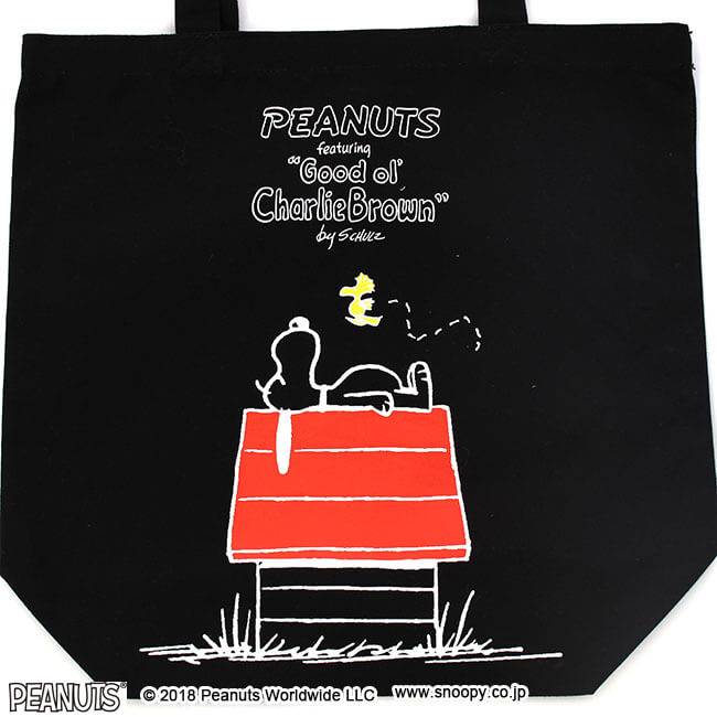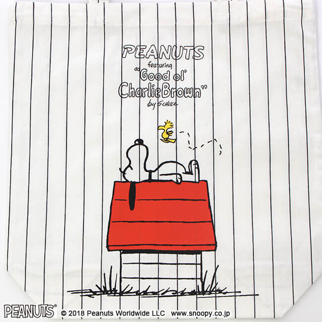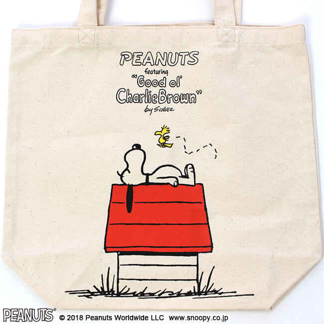 『PEANUTS』のデザインのトートバッグ。