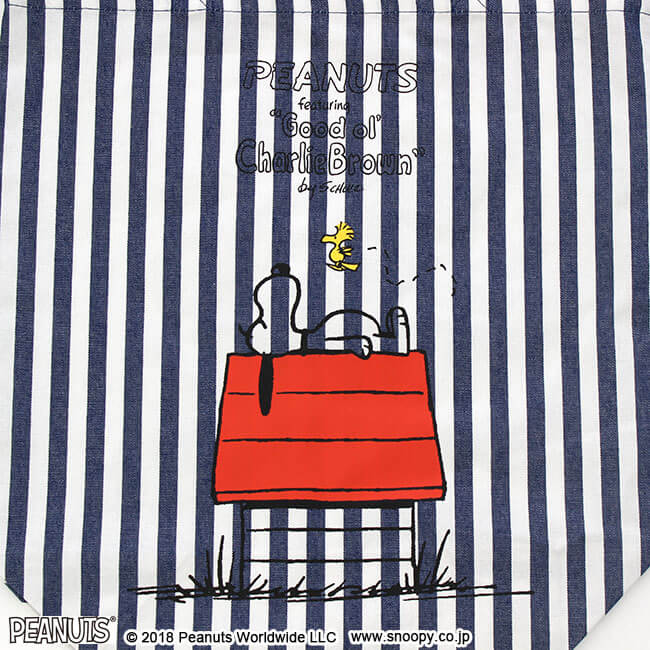 『PEANUTS』のデザインのボーダートートバッグ。