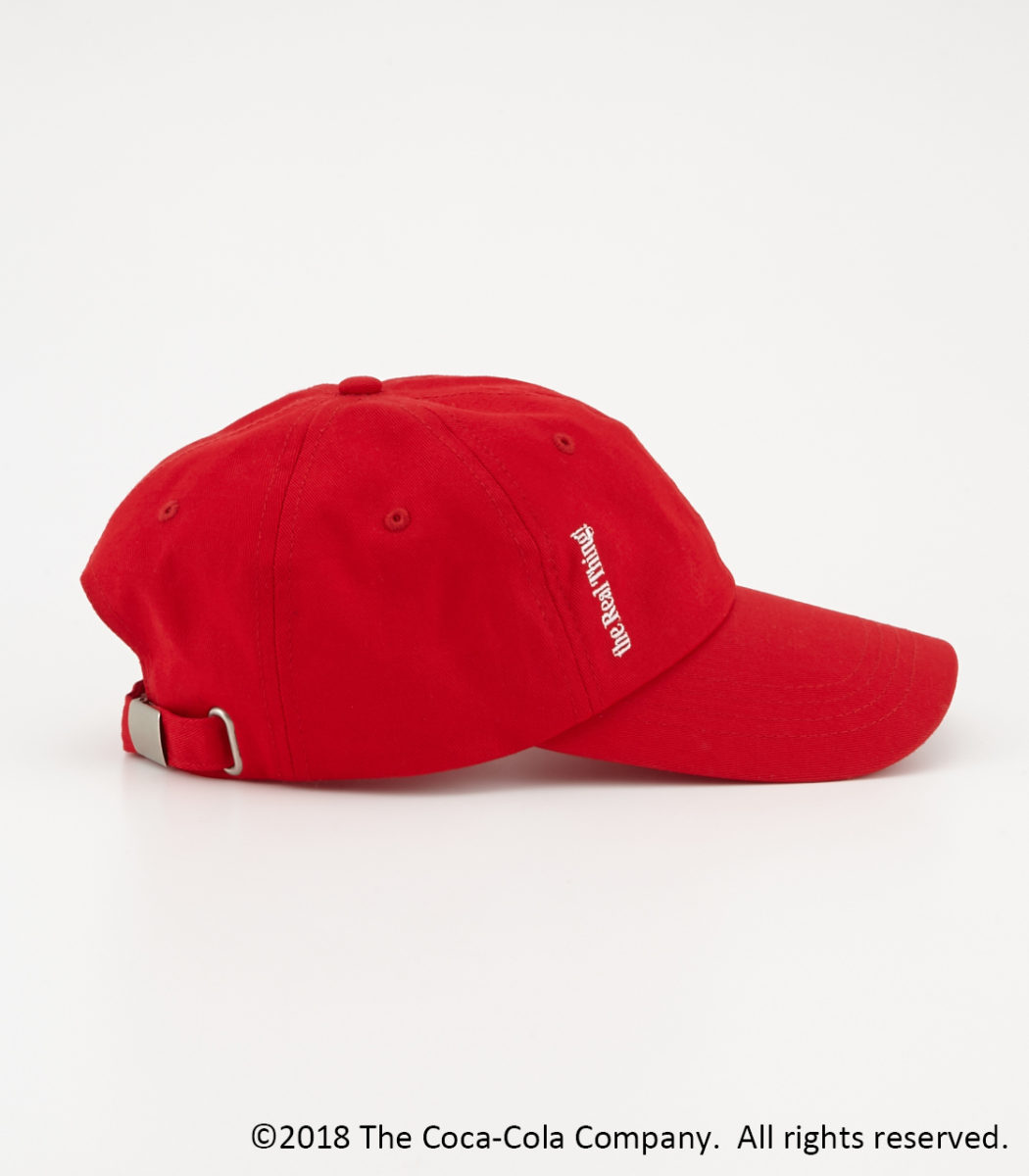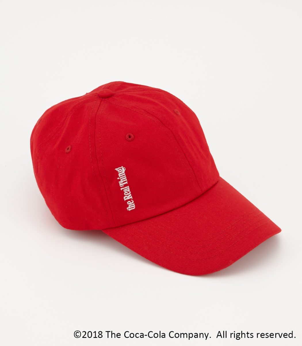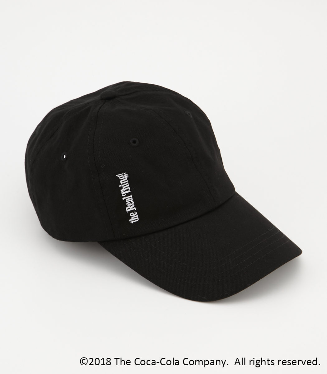 フロントの端に「COCA-COLA」のスローガン「It’s the real thing!」が刺繍でしあしらわれたキャップ。