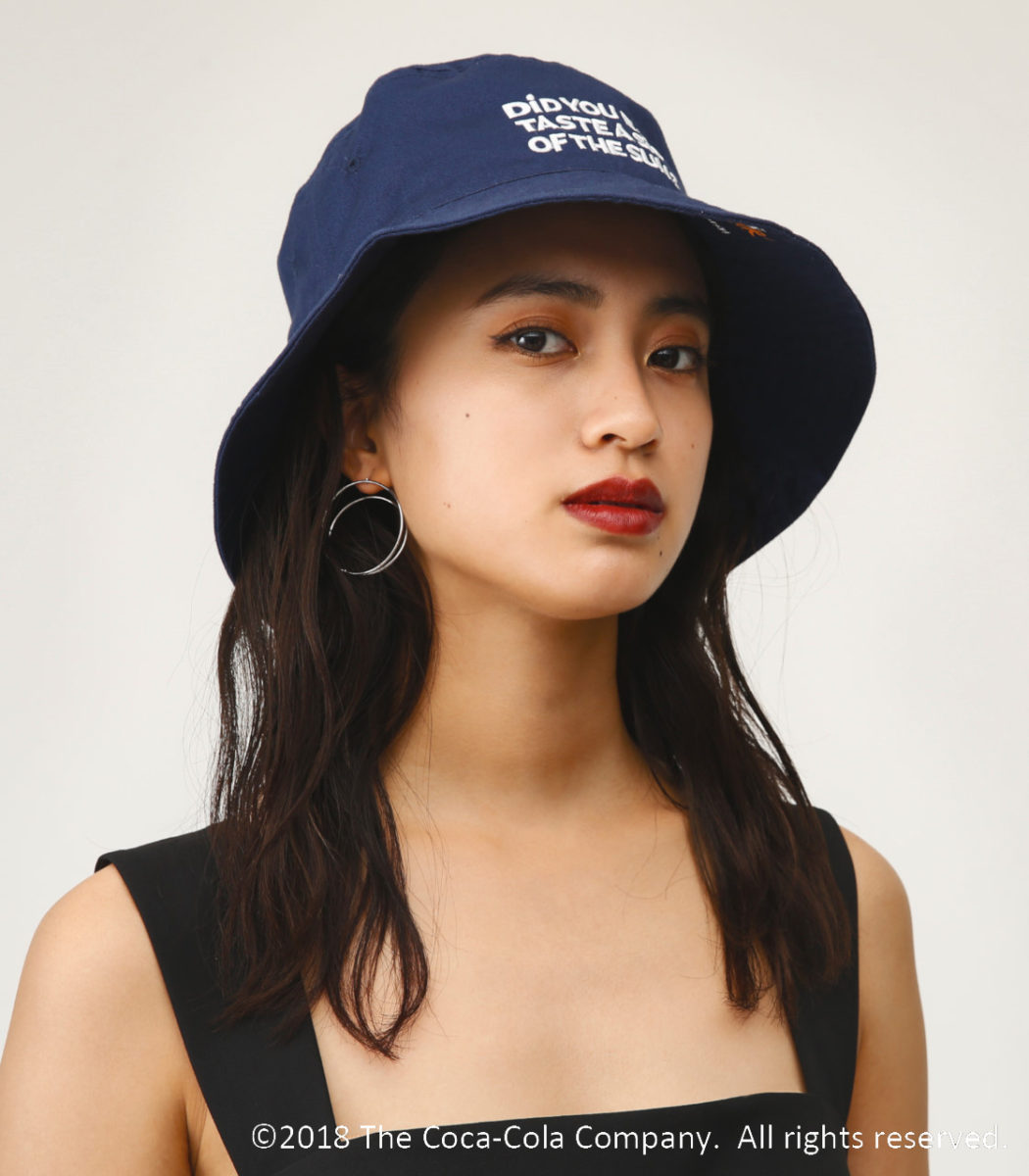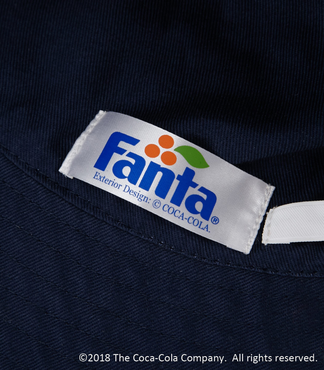 FANTAのキャッチコピーをフロントにFANTAのロゴを左端に刺繍で入れたバケットハット。