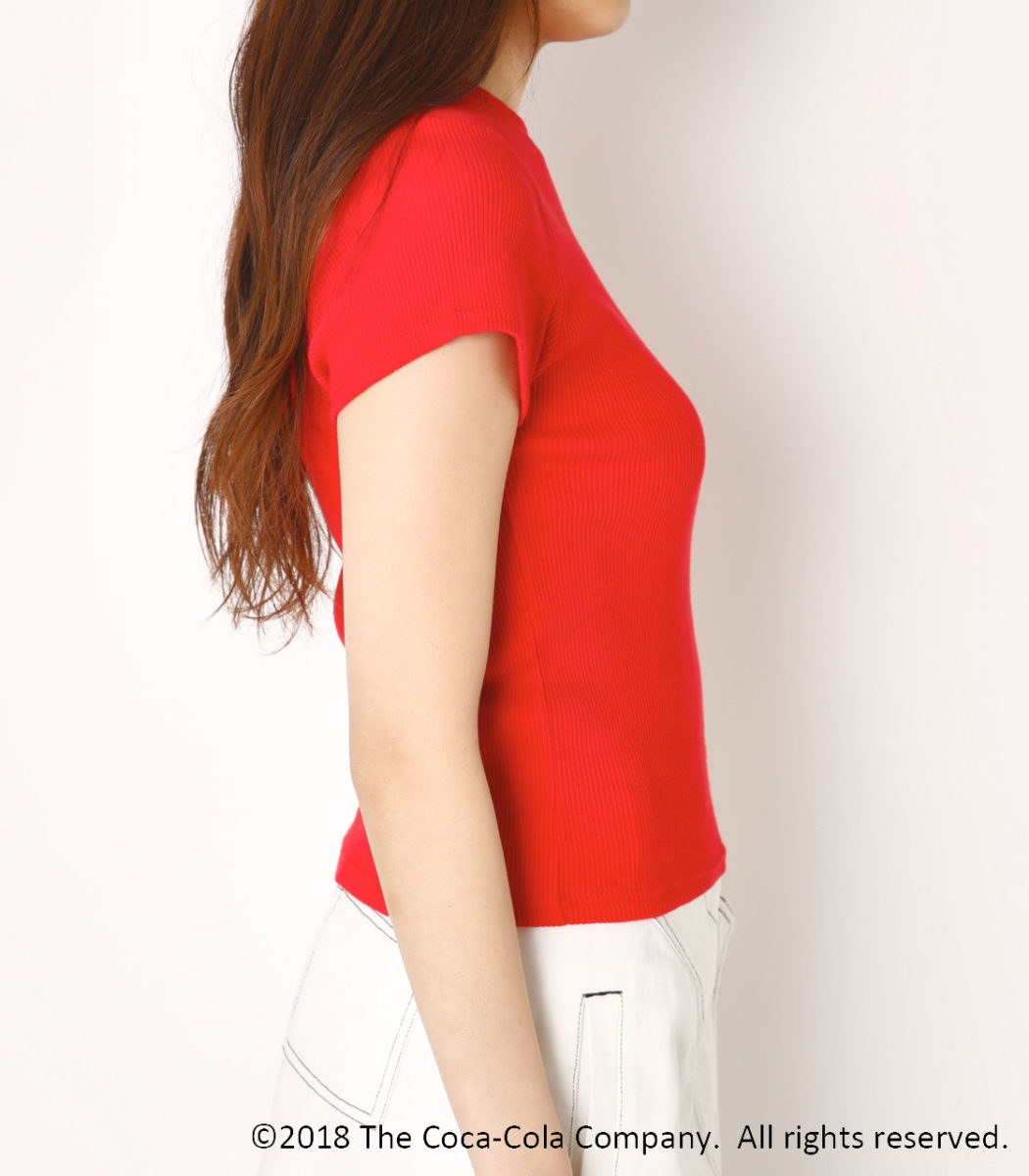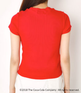 COCA-COLAのロゴをさりげなく使用した他にはないワンショルダーデザインのプリントロンT。