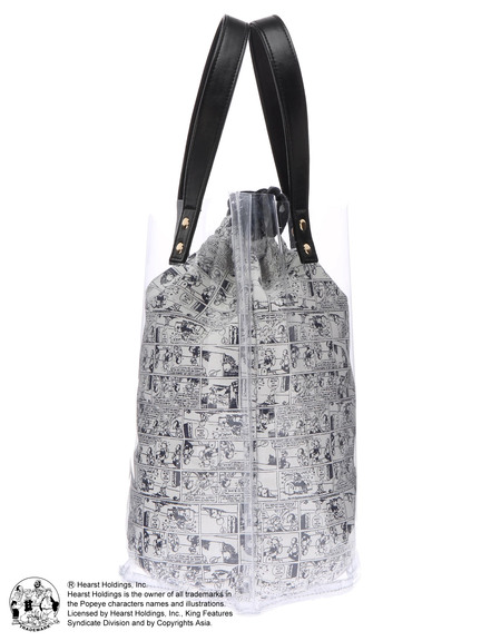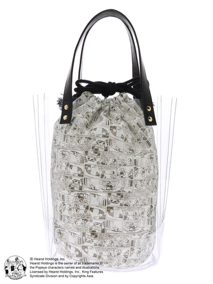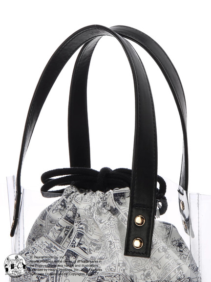 アメコミ風の巾着をインした、モダンキャッチーなクリアバッグ。