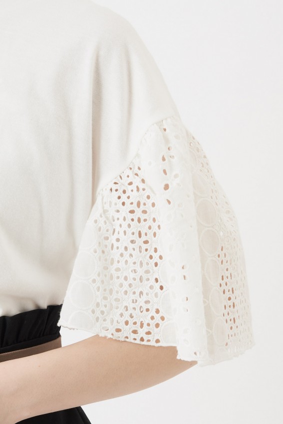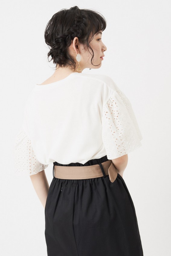 ふんわりとしたお袖のレースがとってもフェミニン。
