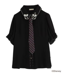 ミッキーマウスとミニーマウスが向き合ったデザインの刺繍がポイントのブラウス。