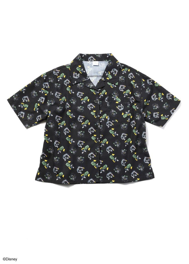 ミッキーデザインは、シックなブラックのアロハシャツ。