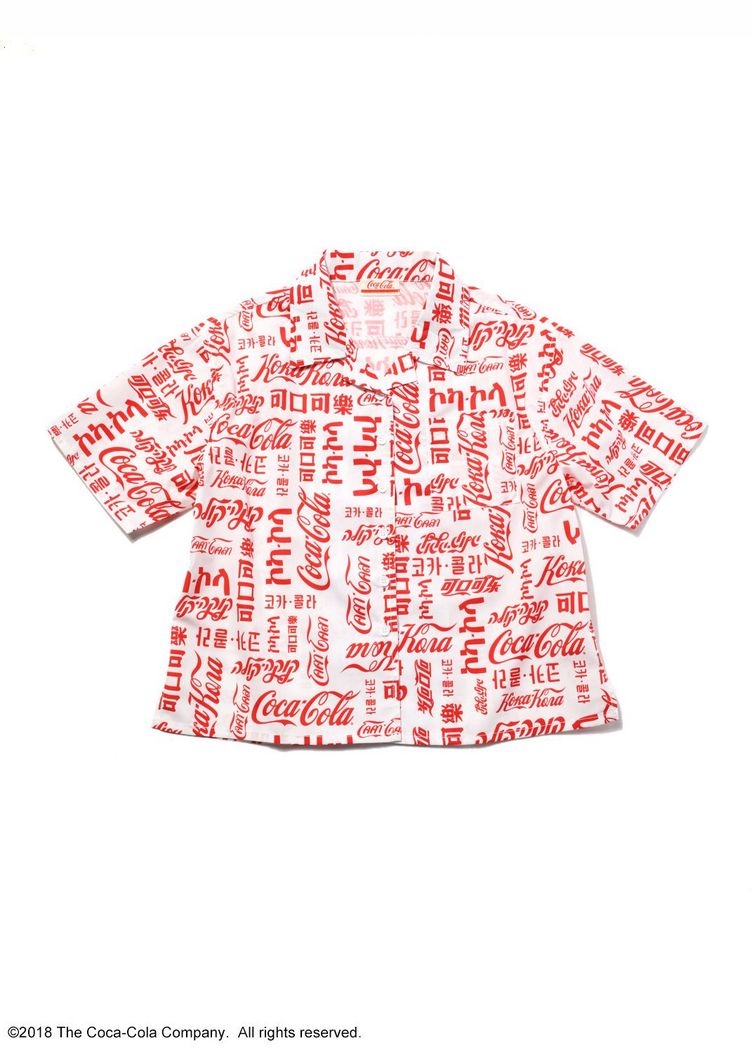 ホワイトに、いろんなフォントの赤い文字で「Coca-Cola」と書かれた総柄デザインです。