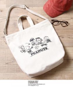 A4サイズもしっかり収納するキャンバストートバッグにスヌーピーや仲間達をプリント。