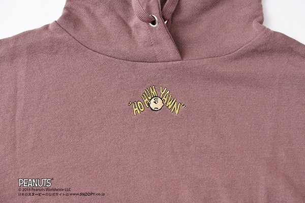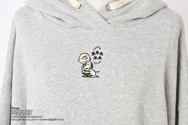 フロントのキャラクター刺繍とさりげなく右ポケットからこっそり飛び出しているウッドストックがなんとも愛らしいアイテム。