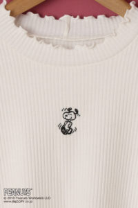 カーディガンやジャンスカのインナーに合わせると、ちょうどSNOOPYがのぞいているような、心くすぐるアイテムです。