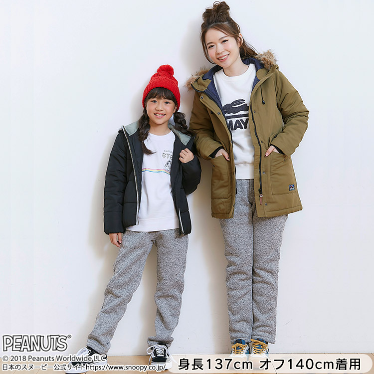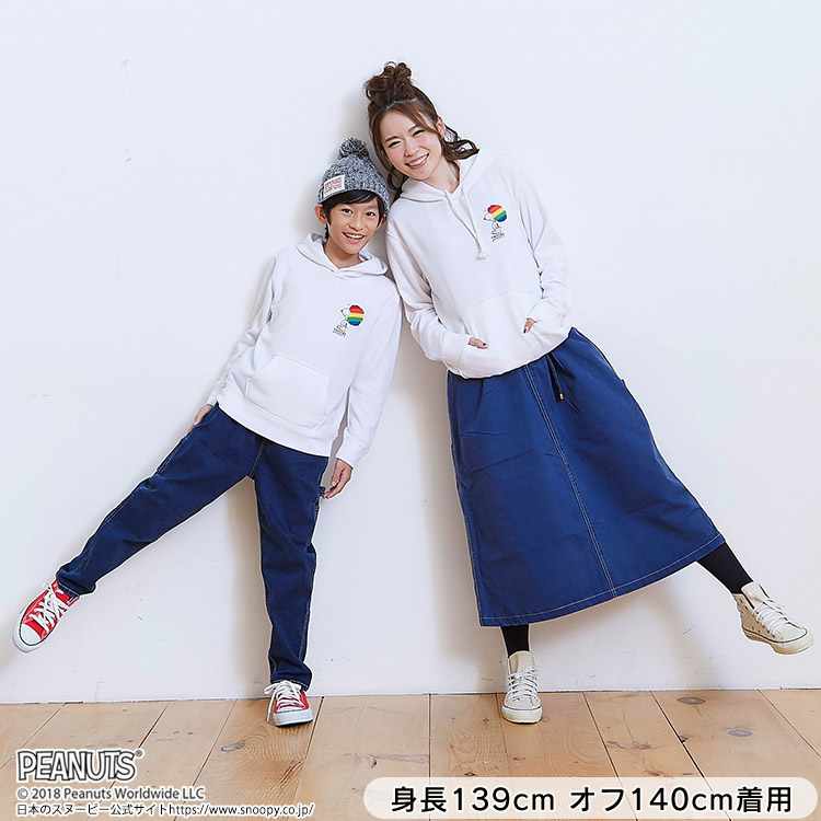 先ほど紹介したレディースサイズの「スヌーピー プルパーカー【ファンキー】」と親子ペアコーデも楽しめます。