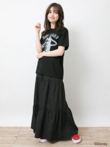 Sサイズは裾をボトムスにINして、花柄のロング丈スカートと合わせたスタイリングが今っぽく着こなせるのでおすすめです。