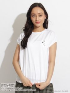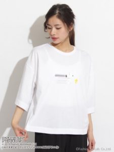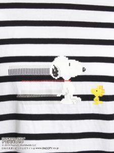 胸元にはデジタルチックな「スヌーピー」の8ビットプリントがあしらわれた、キュートな味付け。