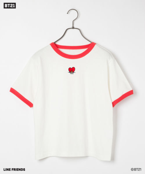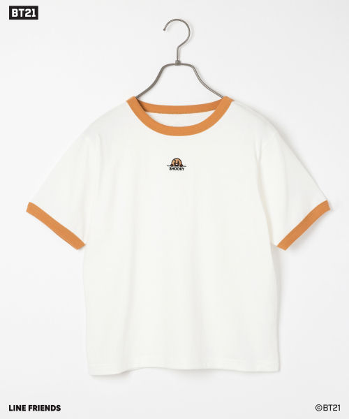 「BT21」のキャラクターが刺繍されたとびきりキュートなリンガーT。