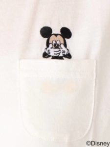 ポケットから顔を出したディズニーキャラクターたちのデザインがユニークでキュートなTシャツ。