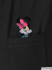 オフホワイトは「ミッキーマウス」、ブラックは「ミニーマウス」、ピンクは「デイジーダック」がそれぞれ刺繍されています。
