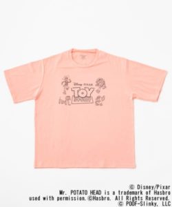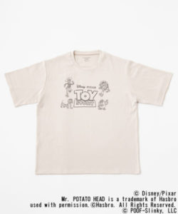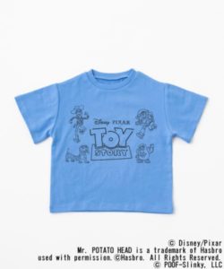 人気キャラクター「ウッディ」「バズ・ライトイヤー」「スリンキー・ドッグ」「ミスター・ポテトヘッド」がプリントされたTシャツ。