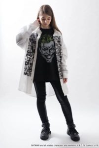 新たな犯罪を企んでいるような不適な笑みを浮かべる「ジョーカー」のデザインが目を引く、ビッグパーカー。