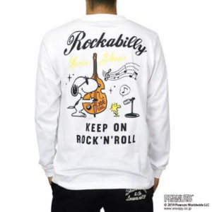 ロカビリー演奏を楽しむ「スヌーピー」と「ウッドストック」がバックにデザインされています。