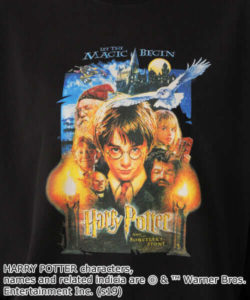バックプリントに魔法の呪文を唱える「ハリー」のアートがあしらわれたデザイン。