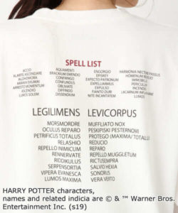 バックに、呪文一覧のアートがデザインされたロンTEE。
