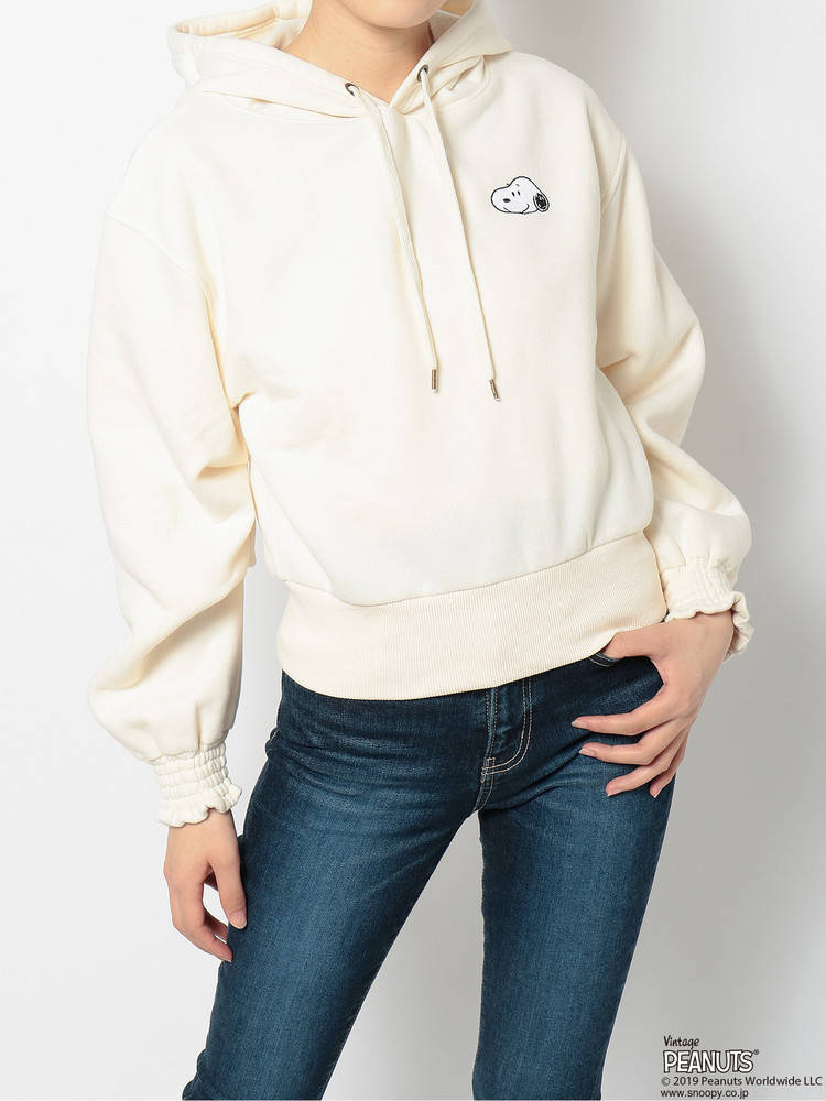 「スヌーピー」と「チャーリー・ブラウン」の愛らしい刺繍がキャッチーなアクセントになっています。