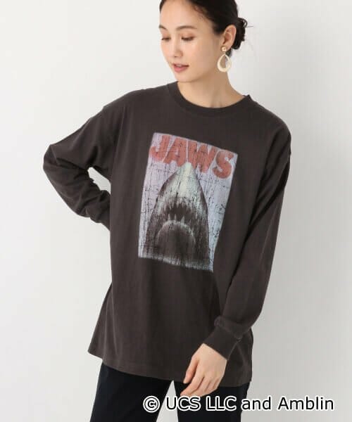 印象的な鮫のアートをカスレ加工を施してプリントしたヴィンテージ風の風合いがおしゃれなロングスリーブTシャツです。