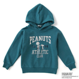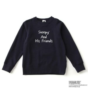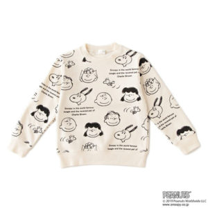 フロントはシンプルなロゴ、バックは「スヌーピー」のお友達やきょうだいがデザインされた『PEANUTS』コラボのトレーナー。