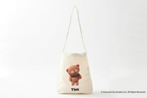 「ティム」がプリントされているアップリケがフロントに大きく施されたトートバッグ。