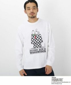 「フライング・エース」に扮した「スヌーピー」のグラフィックがバックにプリントされたポケットTシャツ。