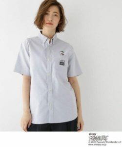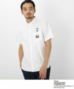 「フライング・エース」に扮した「スヌーピー」が刺しゅうされた使い勝手のよい半袖ボタンダウンシャツ。