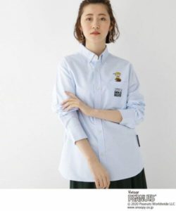 「チャーリー・ブラウン」のベースボールスタイルが愛らしいグラフィックが刺しゅうされたボタンダウンシャツ。