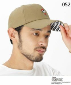 ツバ裏や内側のシームテープに白黒のチェッカーフラッグ柄を組み合わせた、「スヌーピー」らしい遊び心あふれるデザイン。