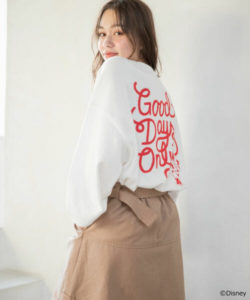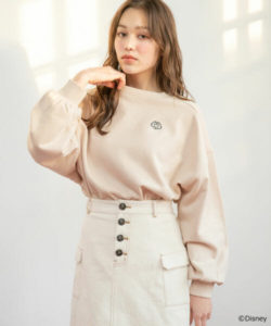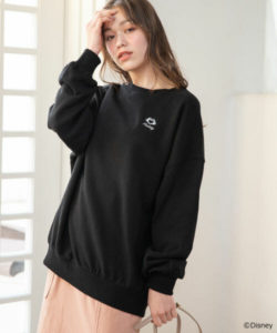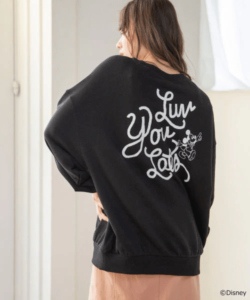 バックロゴがインパクトのある、ディズニーデザインの裏毛トップス。