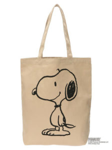 「スヌーピー」のプリントデザインが可愛らしい縦長トートバッグ。