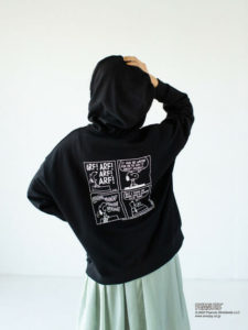 バックスタイルの「スヌーピー」コミックプリントがインパクト抜群な裏毛パーカー。