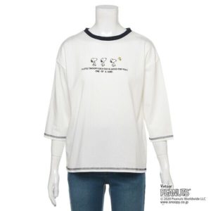 「スヌーピー」の可愛い刺しゅうがおしゃれ見えする『PEANUTS』コラボTシャツ。