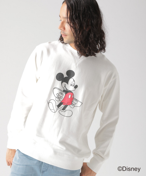 ディズニーのキャラクタープリントがおしゃれな裏毛クルーネックスエット。