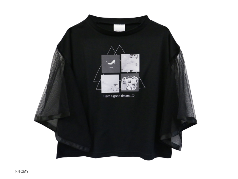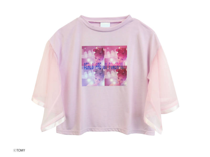 袖切り替えショート丈リカちゃんTシャツ袖がチュール素材で切り替えられているフレアなデザインが女の子らしいTシャツです。