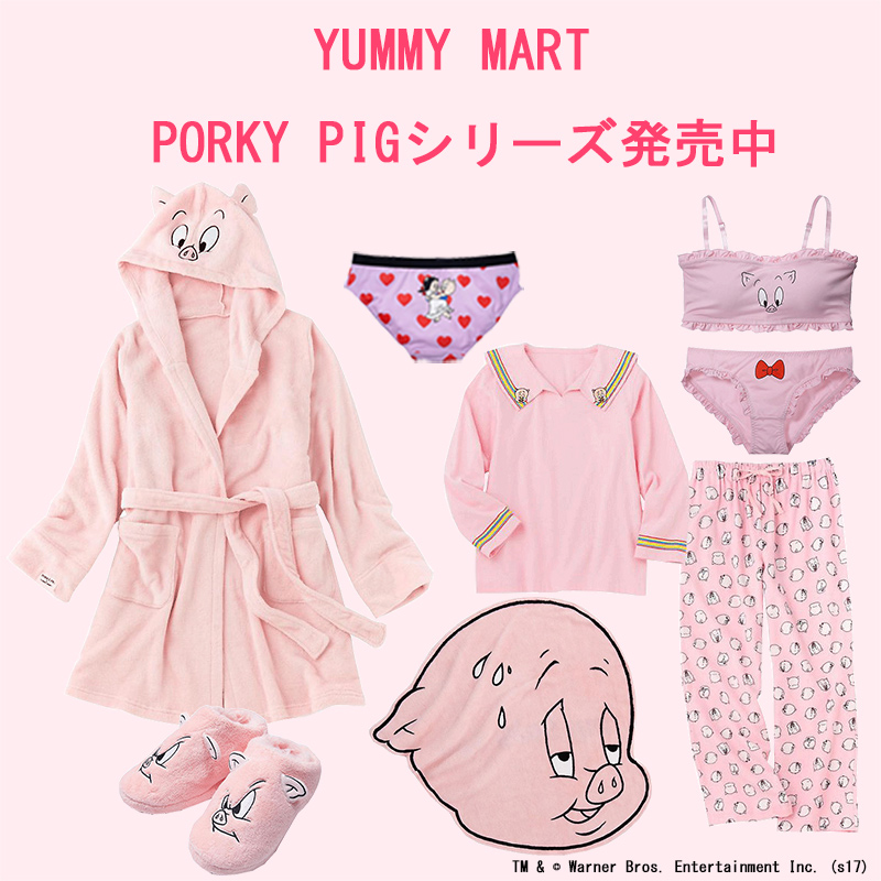 そんなポーキー・ピッグシリーズがYUMMY MARTより発売中です!ピンクでおんなのこらしいデザインのインナーとルームウエアを着ればハッピーになること間違いなしです☆