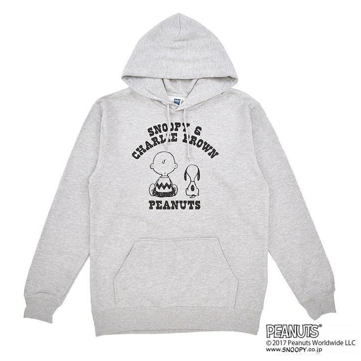 チャーリー・ブラウンとスヌーピーのプリント入りパーカー。