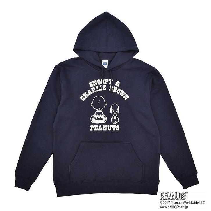 チャーリー・ブラウンとスヌーピーの後ろ姿がかわいいプリントデザインのフード付きパーカーです。