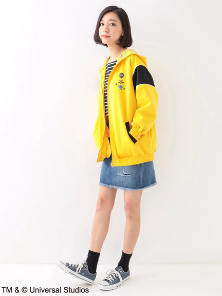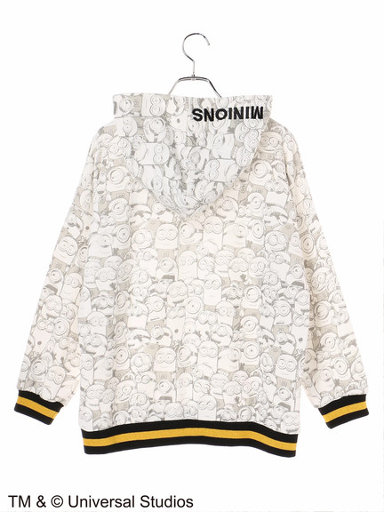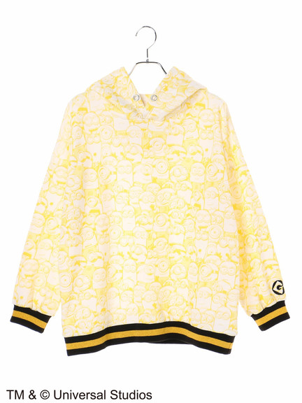 可愛らしいミニオンの総柄プリントをあしらった、遊び心のあるキュートなパーカー。