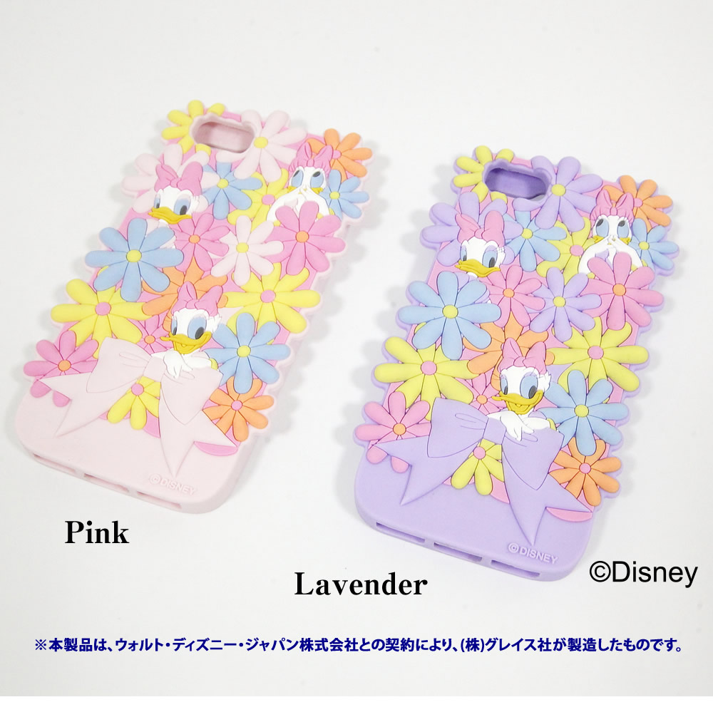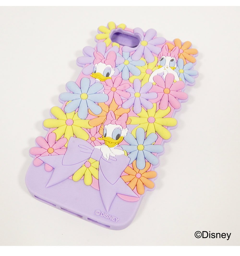 「ドナルド」の素敵な恋人「デイジー」がたくさんのお花に囲まれたシリコン製スマホケースです。