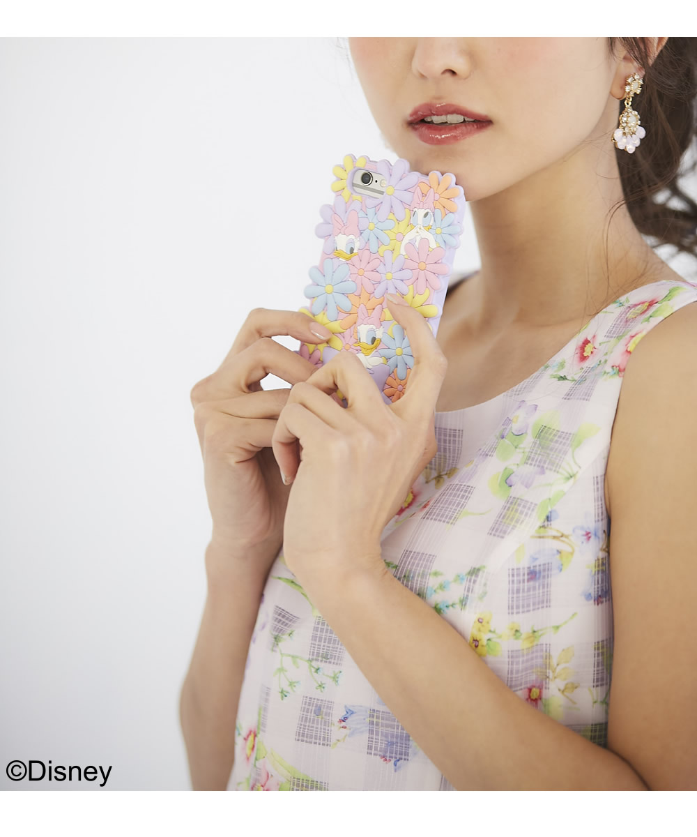 「ドナルド」の素敵な恋人「デイジー」がたくさんのお花に囲まれたシリコン製スマホケースです。
